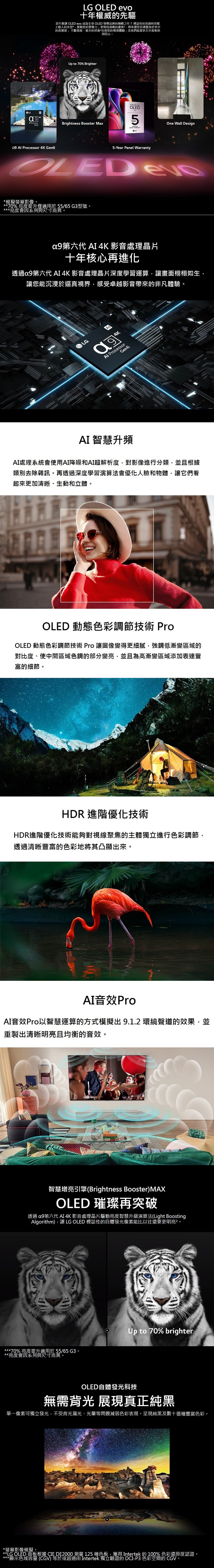 .LG OLED evo 4K 自體發光科技,智慧增亮引擎MAX亮度增加70%