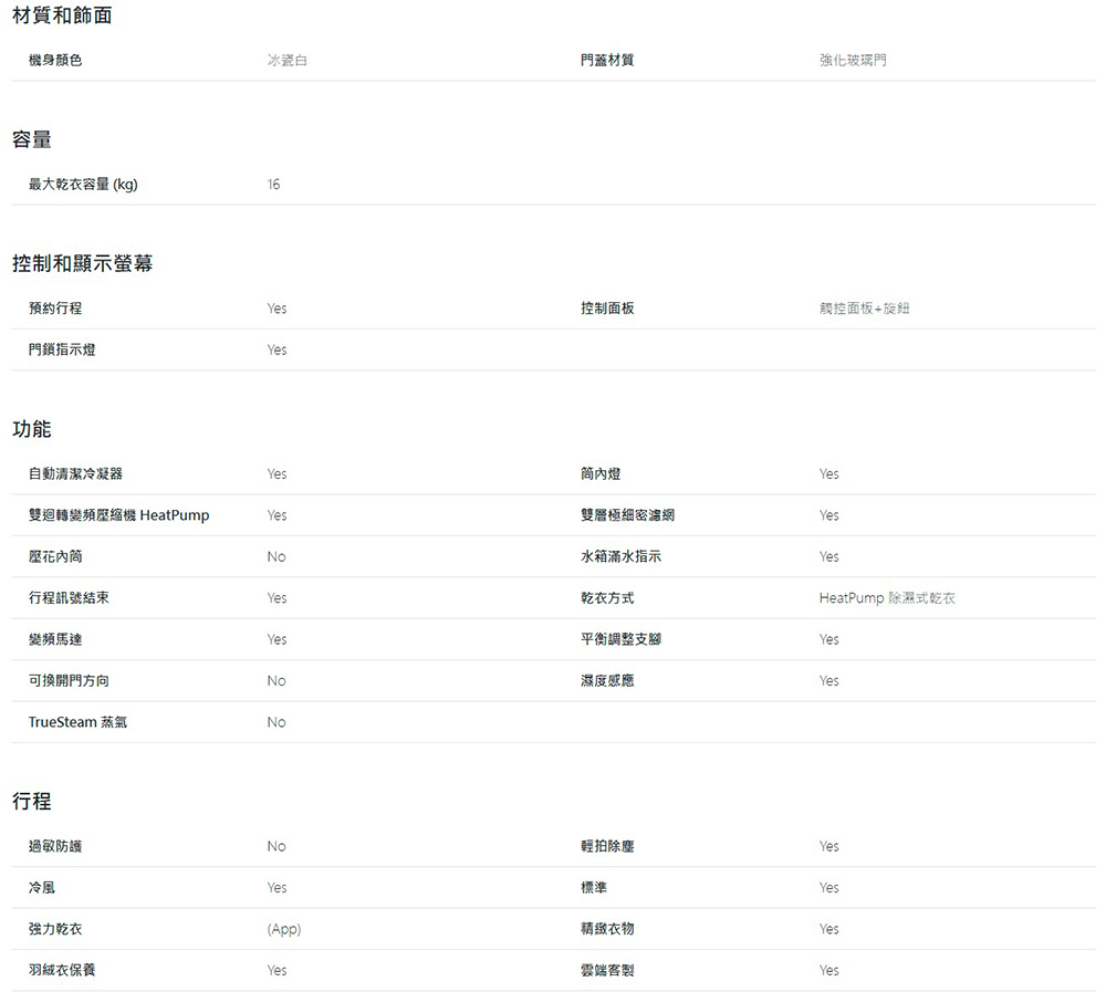 最大乾衣容量:16kg