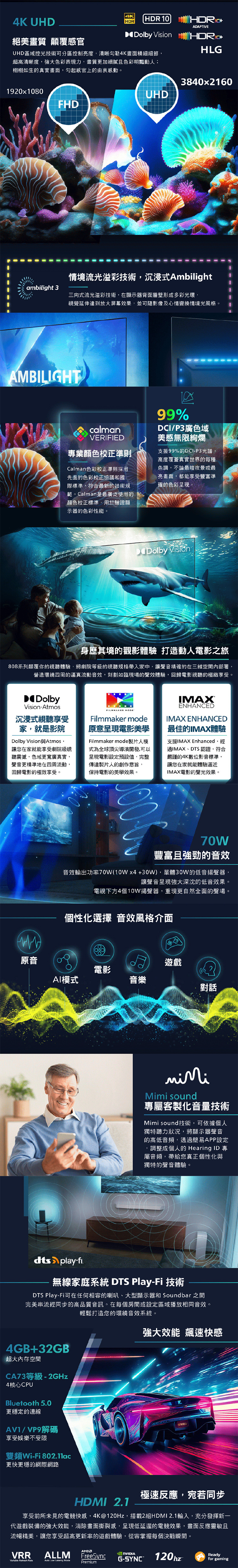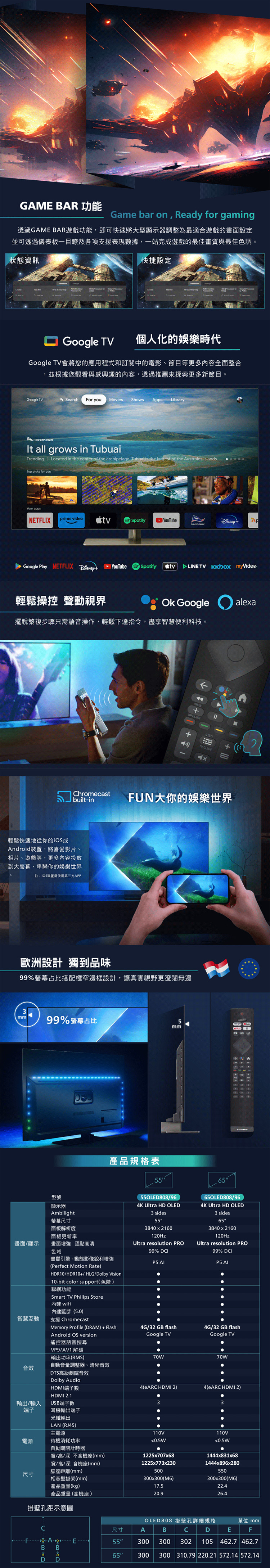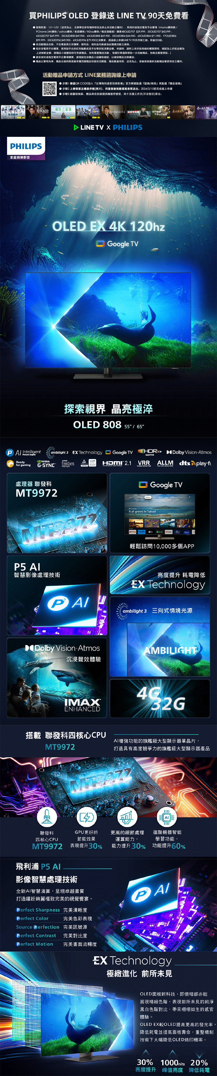 【Philips 飛利浦】65型4K 120Hz OLED 智慧聯網顯示器|65OLED808
