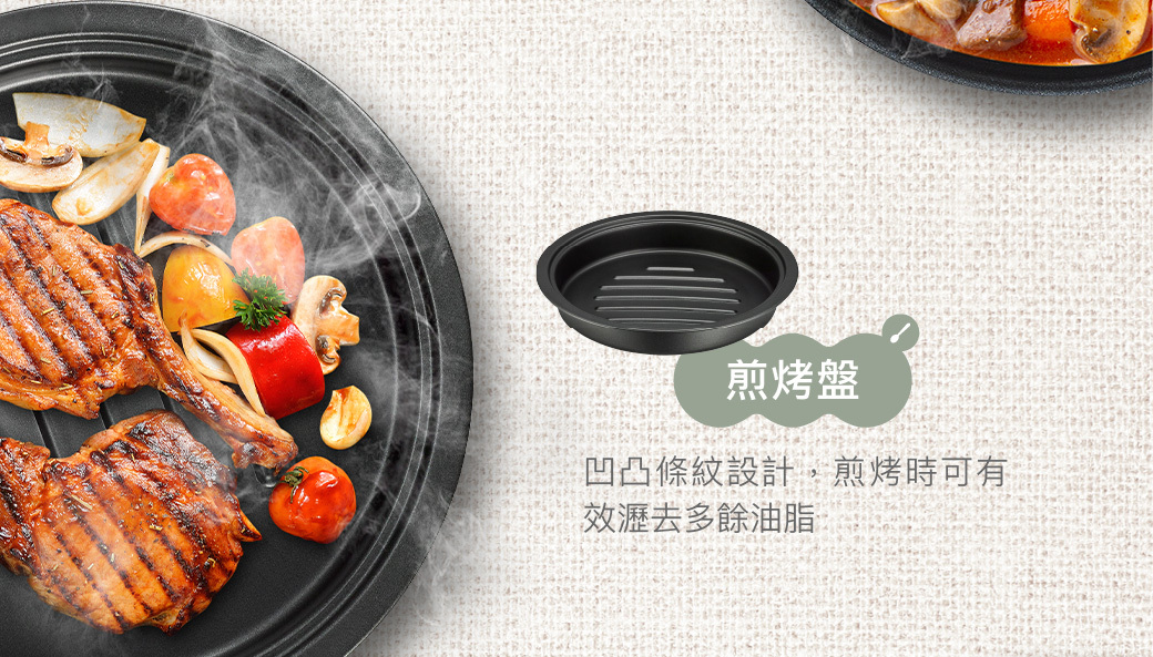 ★ 煎烤盤凹凸條紋設計,有效瀝去多餘油脂