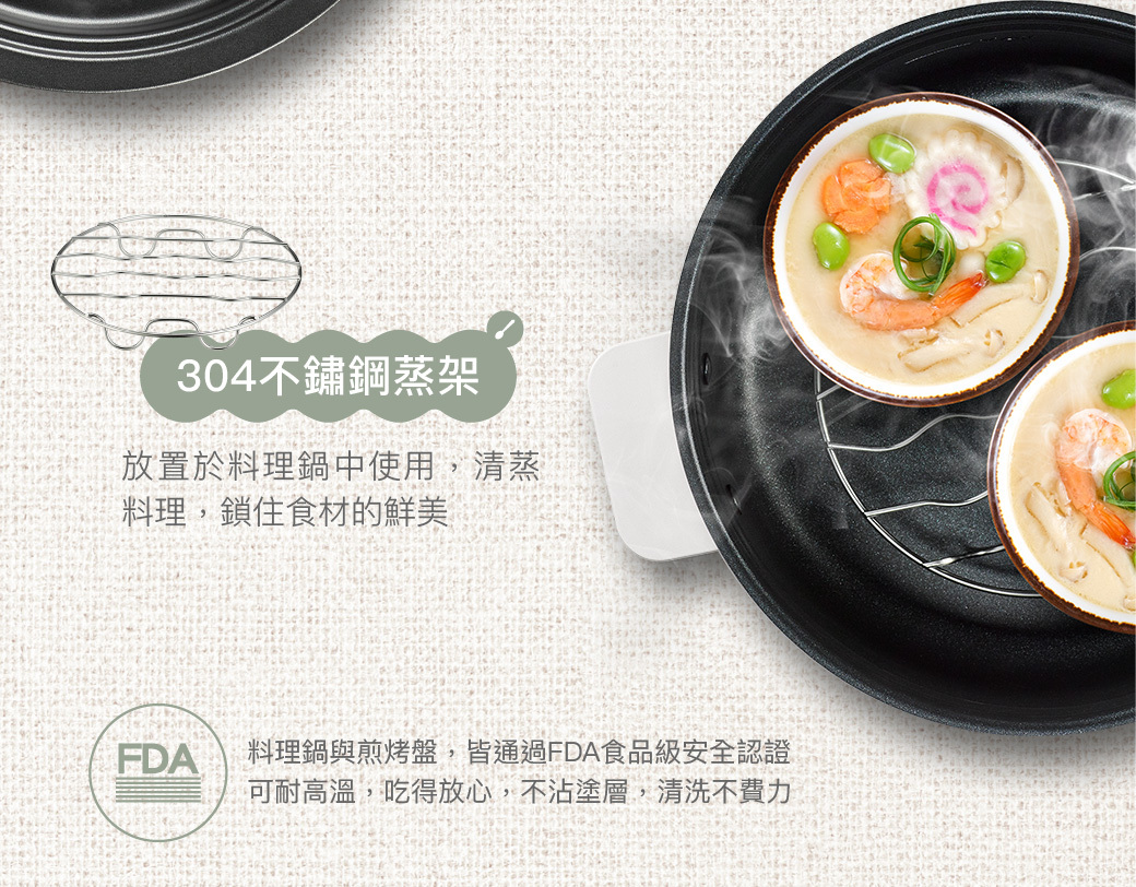 <附贈煎烤盤、蒸籠架>