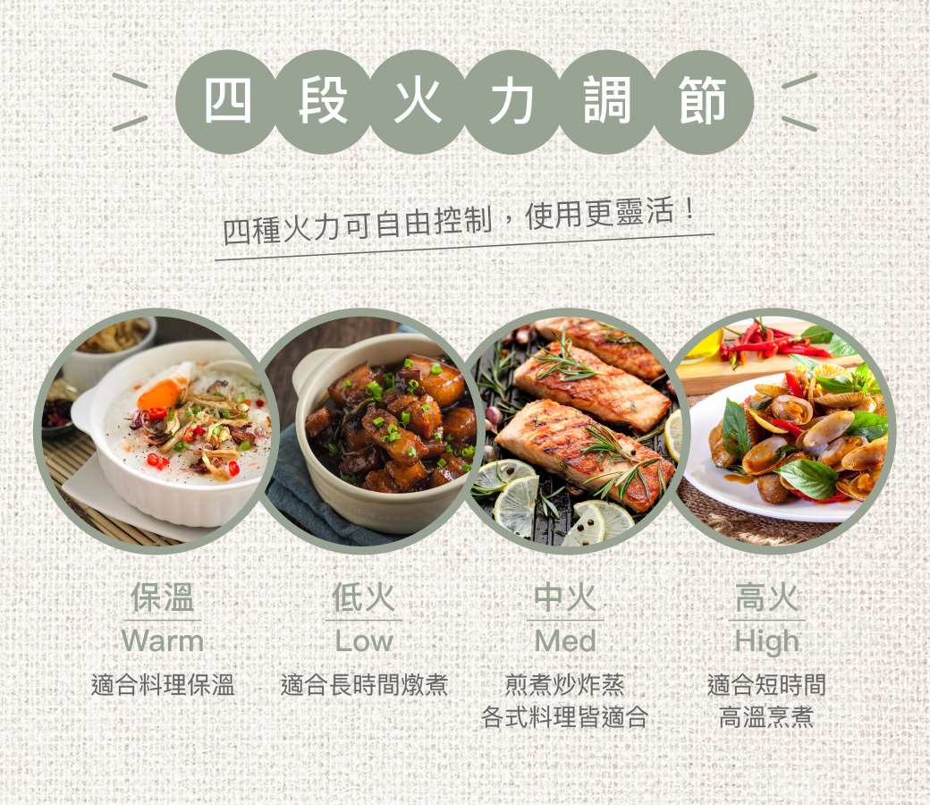 ★ 四段火力調節,多重安全防護