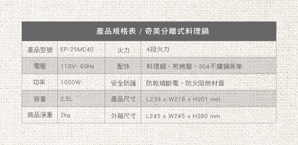 CHIMEI 分離式料理鍋 提供您一年保固期維修,可享全省到站維修服務