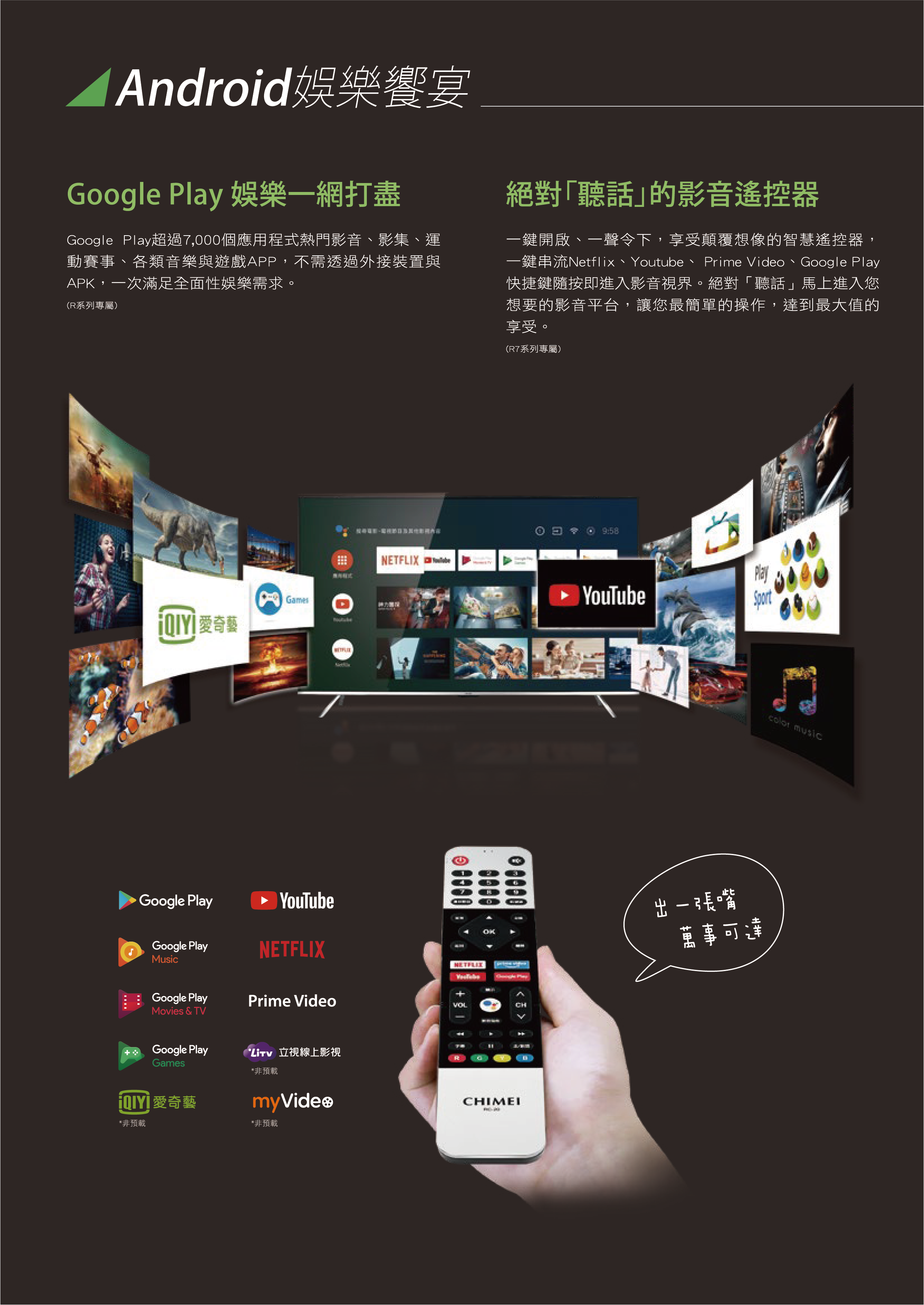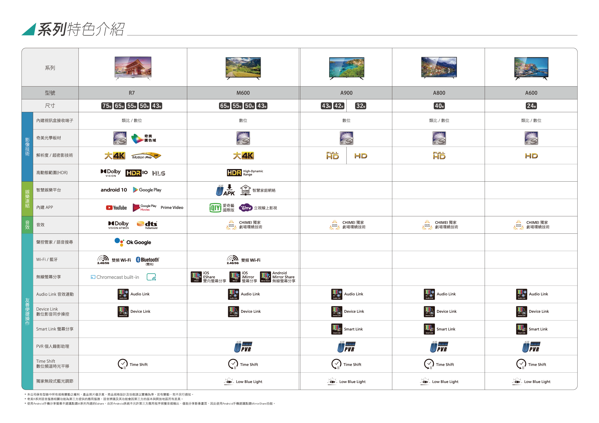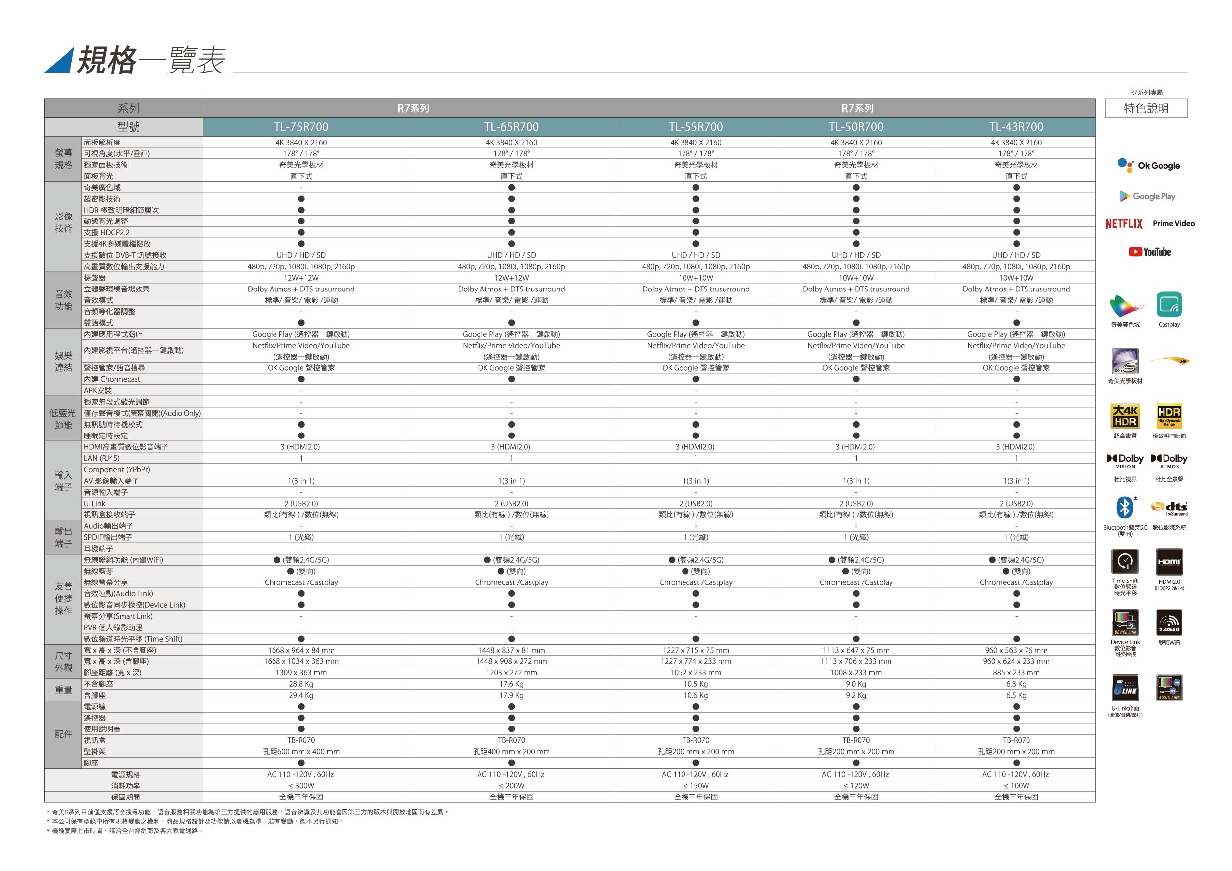 《產品規格》CHIMEI R7系列 提供您三年保固期維修,可享全省到站維修服務